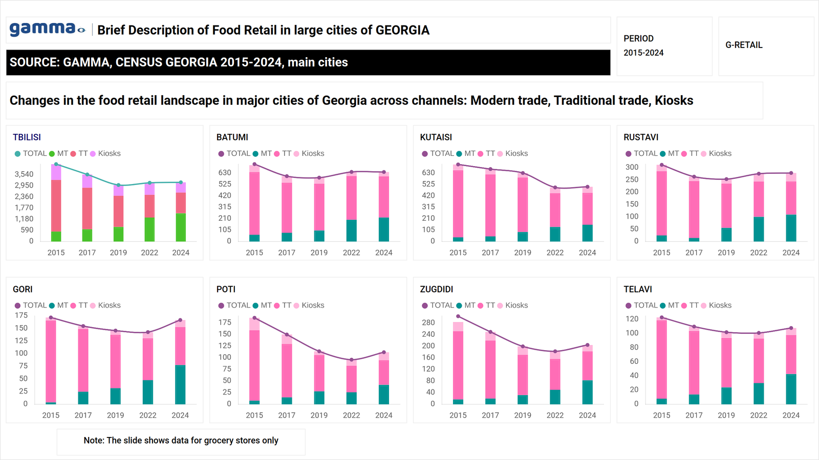 From an international perspective, Georgia’s Modern Trade model appears atypical. While the channel has expanded quantitatively – recording an increase of around 20% in store numbers across cities – the nature of this growth differs from classic retail development patterns.